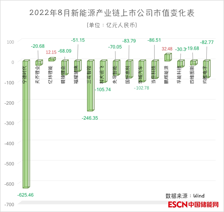 8月,新能源汽車產(chǎn)業(yè)鏈相關(guān)個(gè)股表現(xiàn)同樣低迷。贛鋒鋰業(yè)(SZ002460,股價(jià)83.42元,市值1682億元)市值減少了68.1億元;三花智控(SZ002050,股價(jià)29.26元,市值1051億元)市值減少了246.4億元。