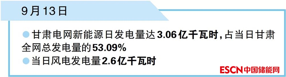 中國儲(chǔ)能網(wǎng)訊:9月13日,甘肅電網(wǎng)新能源日發(fā)電量首次突破3億千瓦時(shí),達(dá)3.06億千瓦時(shí),占當(dāng)日甘肅全網(wǎng)總發(fā)電量的53.09%,其中風(fēng)電發(fā)電量2.6億千瓦時(shí),也創(chuàng)下新高。