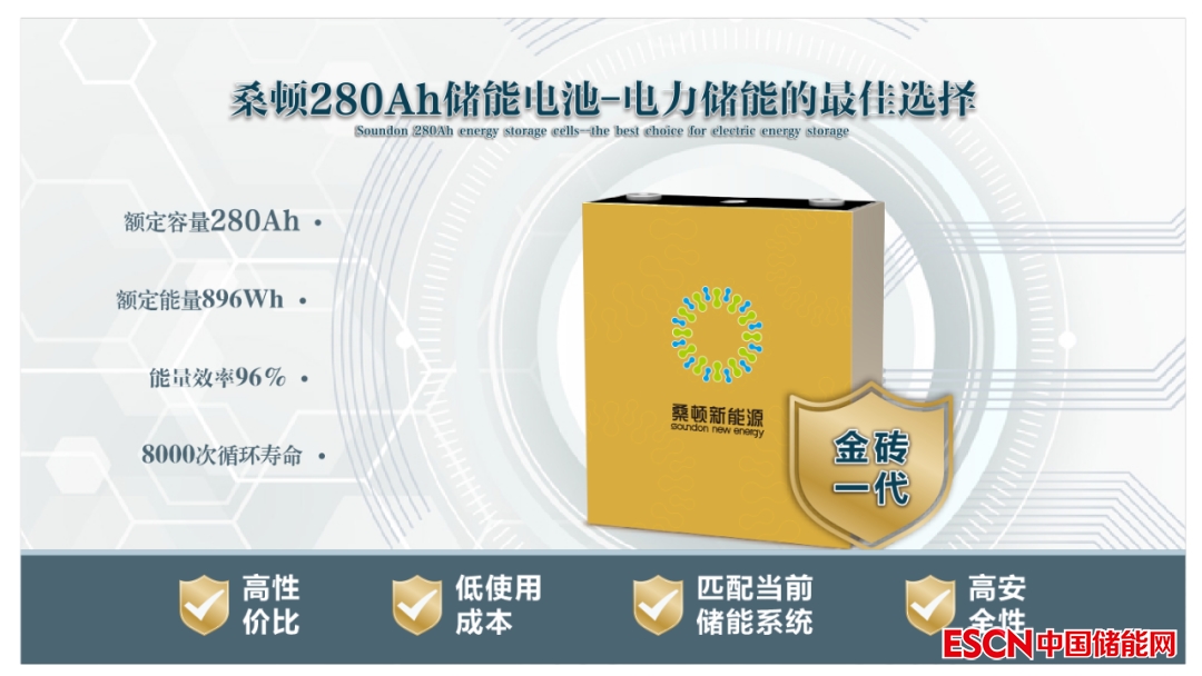 針對以上痛點,桑頓新能源通過重點投入、精準定位,早在2020年就已推出了適用于電力儲能的鋰電池——桑頓第一代金磚電池。該電池單體容量達280Ah,額定能量為896Wh,循環(huán)壽命達8000次以上,能量效率可達96%以上,具有高性價比、低使用成本和高安全性等特點。隨著技術飛速發(fā)展,280Ah電池無疑已成為眾多電池廠商加入儲能項目的重要“入場券”。