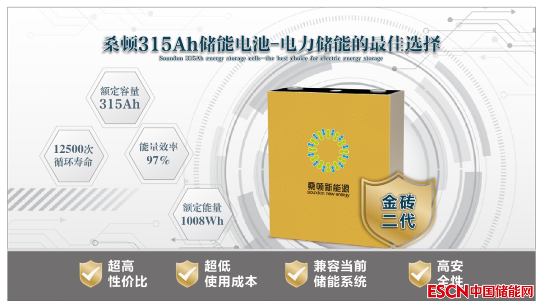該電池單體容量擴充為315Ah,額定能量突破1008Wh,循環(huán)壽命預計將超過12500次,能量效率可達97%以上,此外各項性能將進一步升級優(yōu)化,同時兼容當前的儲能系統(tǒng),將成為桑頓下一代儲能電池明星產品。