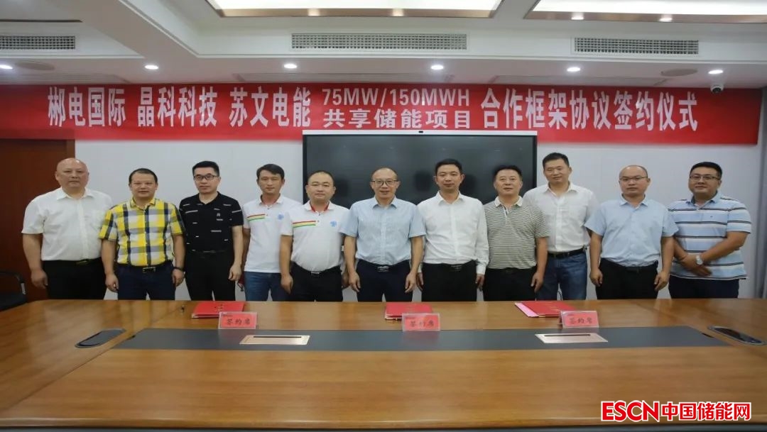 中國儲(chǔ)能網(wǎng)訊:9月15日,晶科科技與湖南郴電國際發(fā)展股份有限公司(以下簡稱“郴電國際”)、蘇文電能科技股份有限公司(“蘇文電能”),于湖南郴州正式簽署《75MW/150MWh集中式共享儲(chǔ)能項(xiàng)目合作框架協(xié)議》。