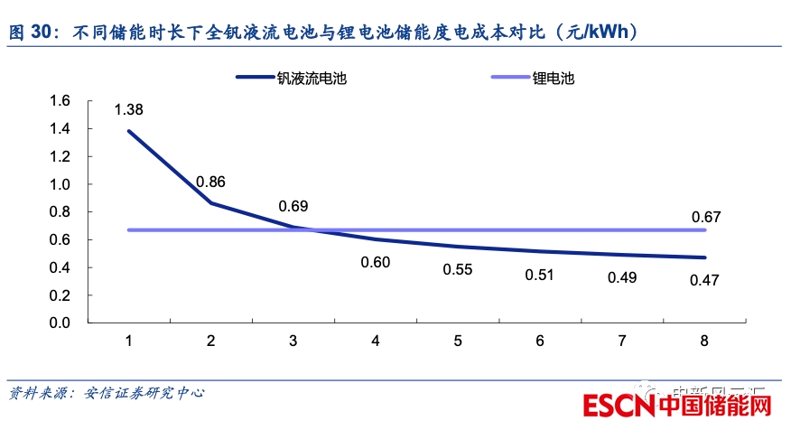 2.2.3. 中長時儲能場景中全釩液流電池已具備較好的經(jīng)濟性