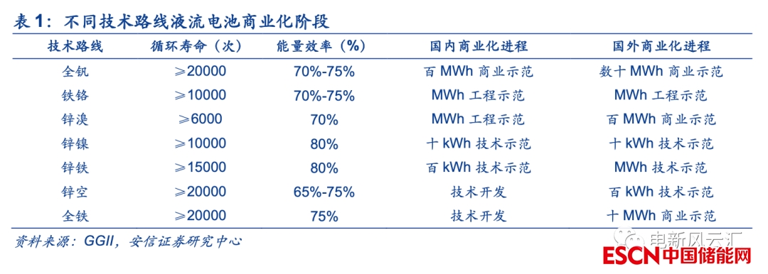 1.1. 全釩液流電池是目前技術(shù)成熟度最高的液流電池技術(shù)
