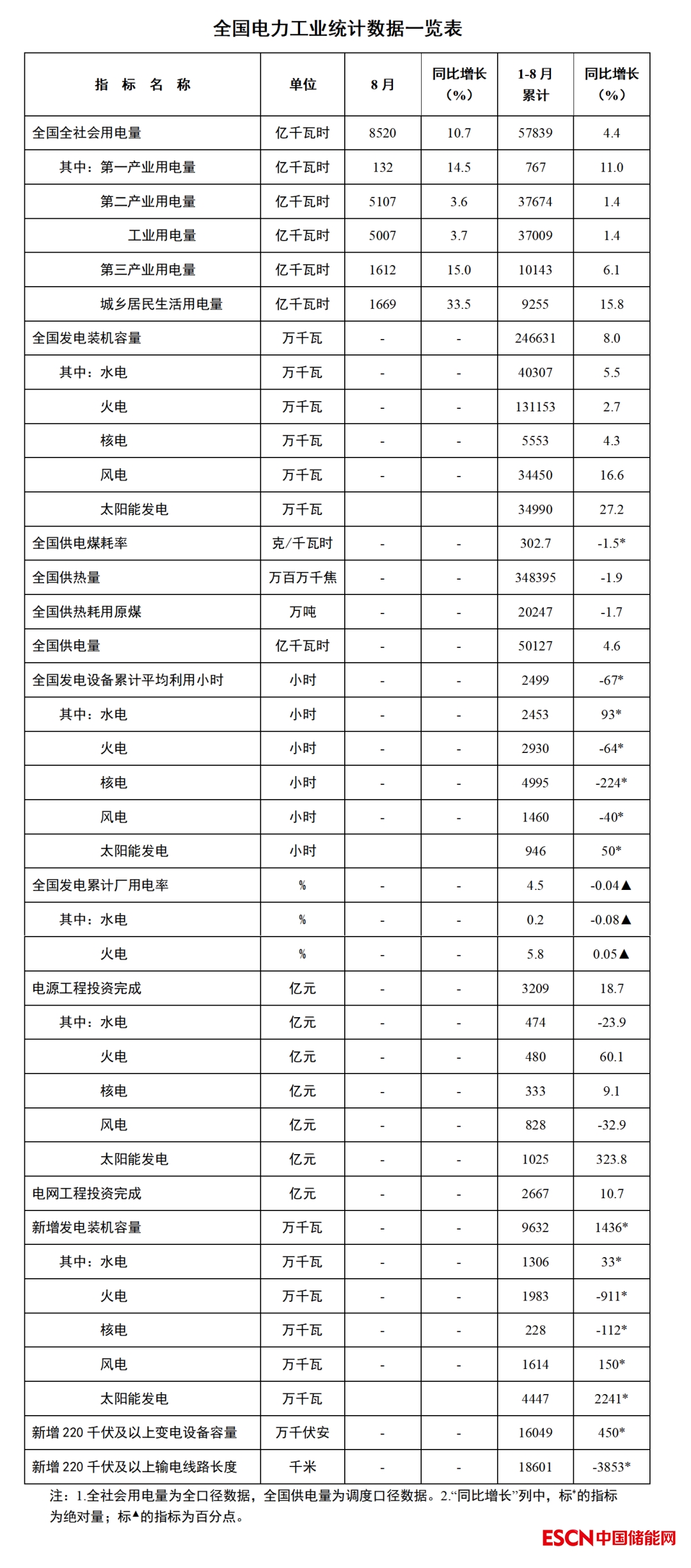 中國儲能網(wǎng)訊:9月21日,國家能源局發(fā)布1-8月份全國電力工業(yè)統(tǒng)計數(shù)據(jù)。截至8月底,全國發(fā)電裝機(jī)容量約24.7億千瓦,同比增長8.0%。其中,風(fēng)電裝機(jī)容量約3.4億千瓦,同比增長16.6%;太陽能發(fā)電裝機(jī)容量約3.5億千瓦,同比增長27.2%。