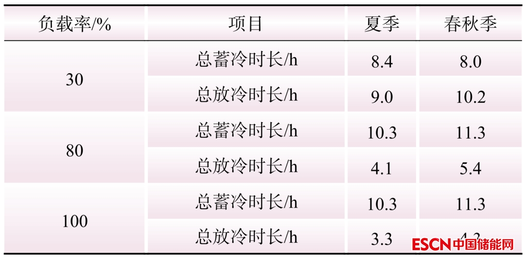 表2 不同參數(shù)對應(yīng)的蓄冷時長、放冷時長