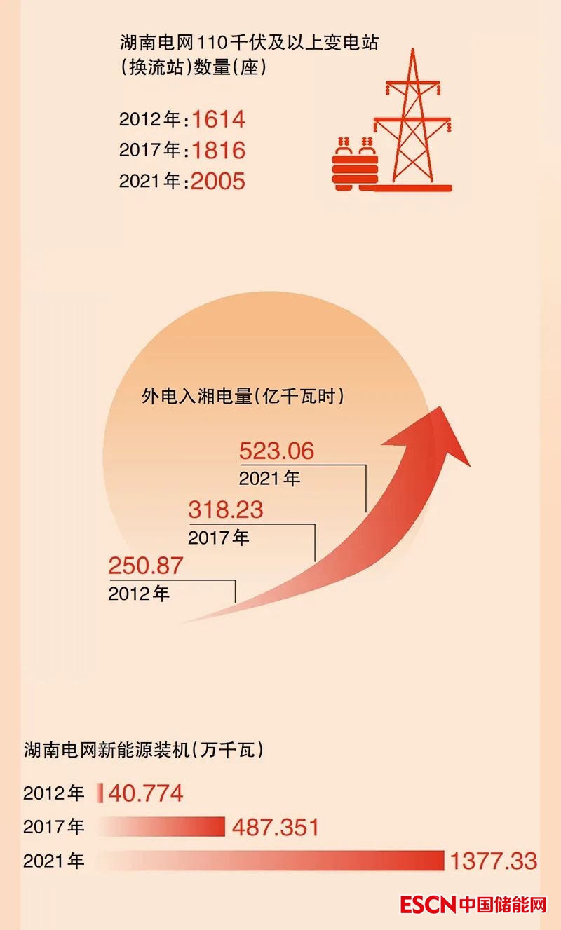 “2012年以來,湖南電網(wǎng)發(fā)生了很大變化?!眹W(wǎng)湖南電力發(fā)展部副主任潘力強說,“10年間,湖南電網(wǎng)基建投資累計達1493.94億元。2021年,湖南電網(wǎng)完成基建投資235.91億元,是2012年投資額的3倍左右?!?