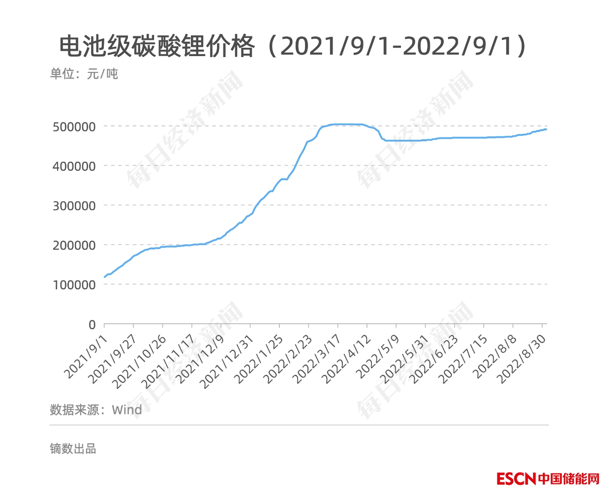 “誰給誰打工”的爭論,體現(xiàn)的就是目前行業(yè)話語權(quán)的變動(dòng)。據(jù)Wind數(shù)據(jù),2022年9月1日國內(nèi)電池級(jí)碳酸鋰價(jià)格為49萬元/噸,和去年同期的11.7萬元/噸相比,漲逾3倍。
