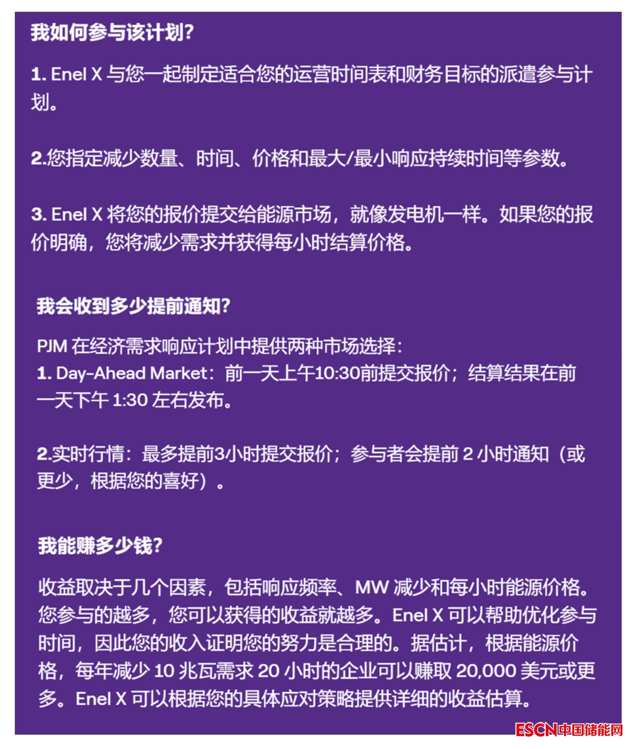 下面以一家名為EneX能源的CSP為例,它在給用戶的宣傳手冊中給出了需求響應(yīng)的參與要點。