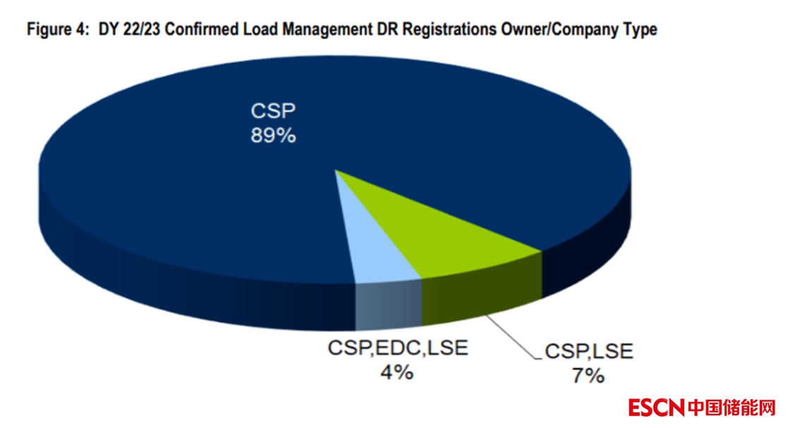 在PJM市場,想要參與需求響應(yīng)的用戶必須先與一家CSP建立代理關(guān)系,CSP可以為用戶提供必要的設(shè)備和軟件系統(tǒng)以進行需求響應(yīng),這要求CSP擁有一些基礎(chǔ)設(shè)施并充分了解所有批發(fā)市場規(guī)則和流程,以挖掘市場機會。CSP聚合各類用戶的需求響應(yīng)資源在PJM市場上進行報價,并將獲取的收益與用戶進行分成。CSP可以是一家只專注于需求響應(yīng)業(yè)務(wù)的公司,也可以是售電公司(load-serving entities,LSEs),還可以是當?shù)氐呐潆娋W(wǎng)運營商(electric distribution companies,EDCs)。目前接近9成的CSP都是專注需求響應(yīng)業(yè)務(wù)的專業(yè)公司。
