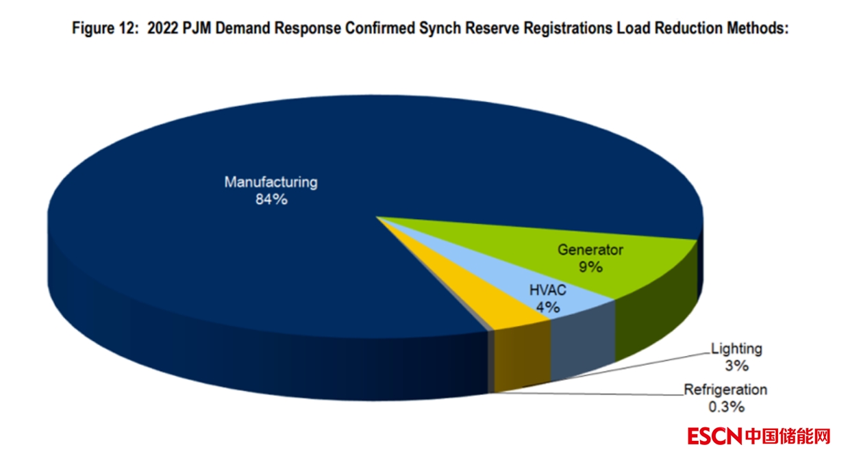 而對于同步備用市場,大約85%的需求響應(yīng)資源參與方式是通過調(diào)整工業(yè)生產(chǎn),其他手段還有通過調(diào)節(jié)發(fā)電設(shè)備或者暖通、制冷設(shè)備。