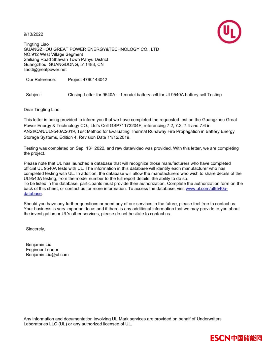 中國(guó)儲(chǔ)能網(wǎng)訊:近日,鵬輝能源儲(chǔ)能電芯GSP71173204F-280Ah獲得 UL9540A認(rèn)證,這是繼2021年公司的GSP34135214-100AH電芯獲得該認(rèn)證后,再次成功獲得“該項(xiàng)”國(guó)際認(rèn)證,標(biāo)志著公司研發(fā)與生產(chǎn)的電芯產(chǎn)品獲得全球儲(chǔ)能電池領(lǐng)先標(biāo)準(zhǔn)的認(rèn)可,具有高安全等級(jí),這將助力鵬輝能源更好地開拓國(guó)際儲(chǔ)能市場(chǎng)。