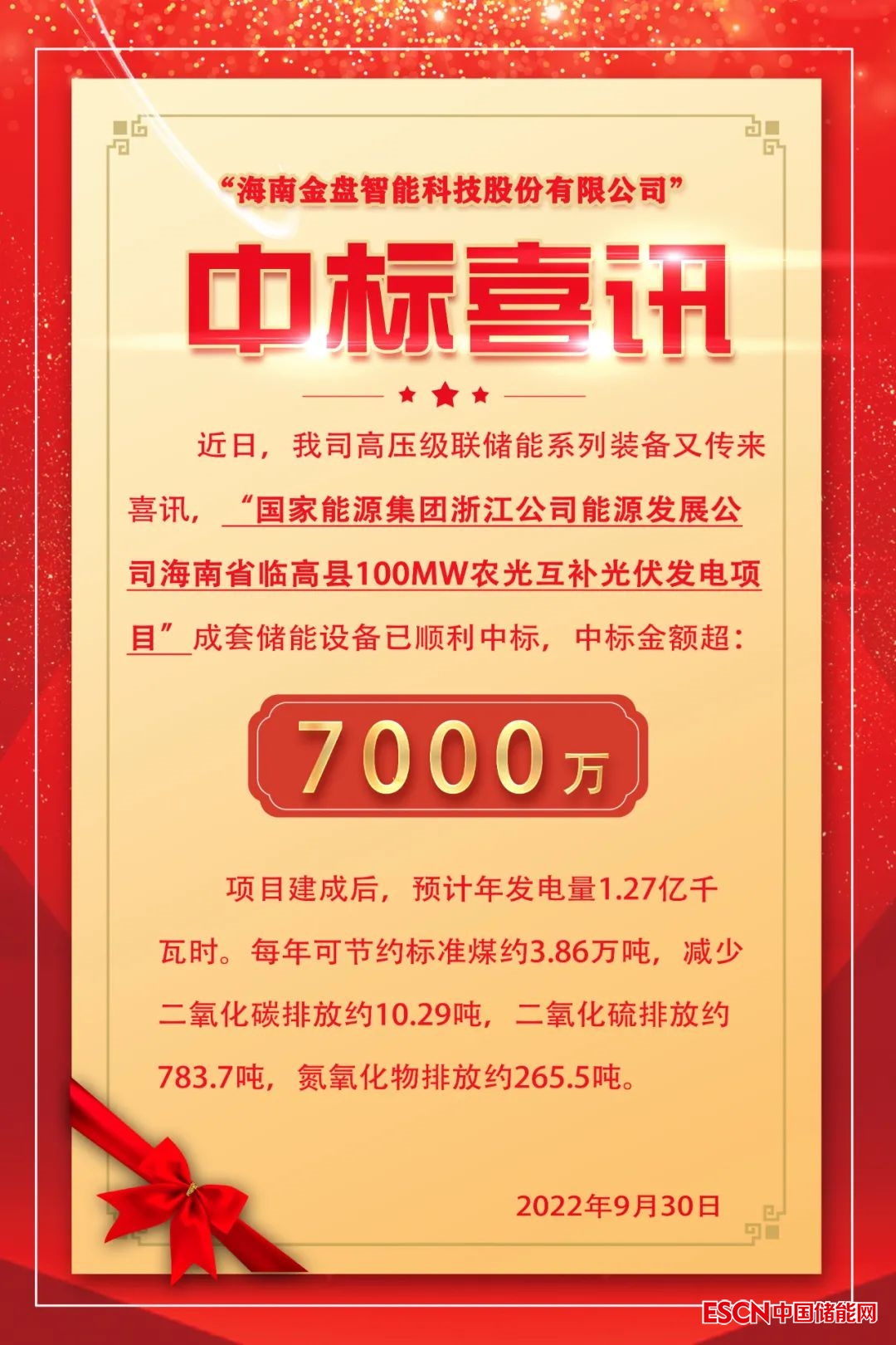 喜訊丨金盤科技又一高壓級(jí)聯(lián)儲(chǔ)能項(xiàng)目中標(biāo)