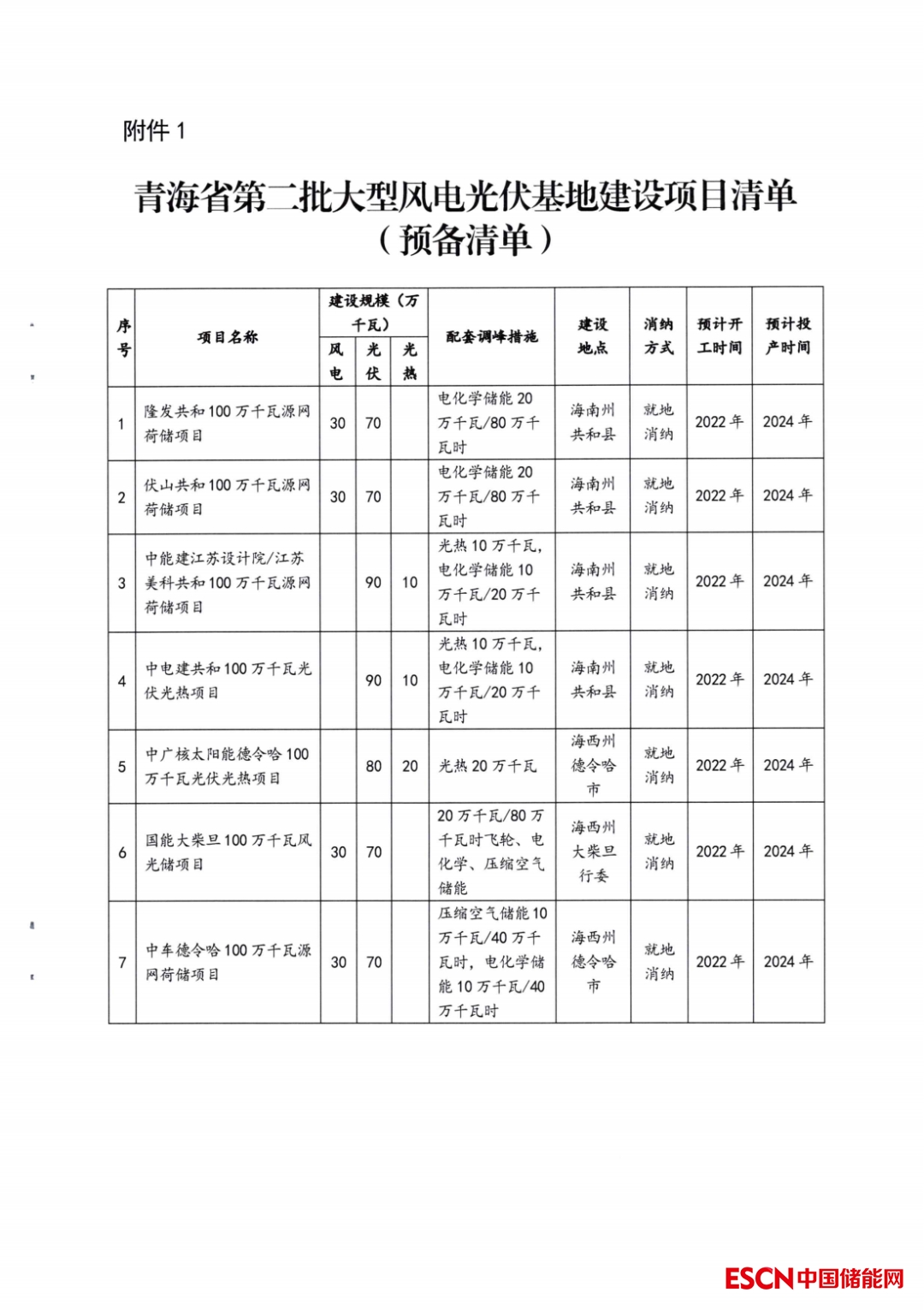 根據(jù)清單,青海省第二批項(xiàng)目共計(jì)將建設(shè)540萬千瓦光伏、120萬千瓦風(fēng)電、40萬千瓦光熱以及100萬千瓦/360萬千瓦時儲能。儲能類型包括,電化學(xué)儲能、壓縮空氣儲能、飛輪儲能等。這些項(xiàng)目均采取就地消納,建設(shè)工期均為2年,預(yù)計(jì)開工2022年9月底前~投產(chǎn)2024年。項(xiàng)目詳情如下: