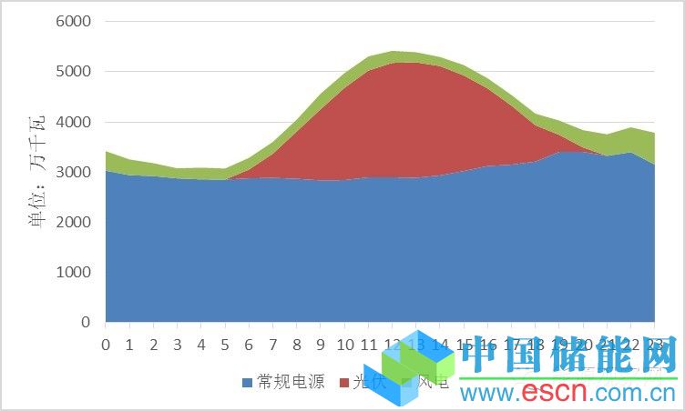 從13:00其他各類型電源出力情況看,核電882.1萬千瓦,抽水蓄能67.8萬千瓦,常規(guī)水電100萬千瓦,氣電56萬千瓦,油電15萬千瓦,褐煤1385萬千瓦,生物質4萬千瓦,其他常規(guī)電源379萬千瓦??梢钥闯觯斎展夥酝獾钠渌娫闯隽χ?,以及風電出力都沒有發(fā)生大的波動,中午高峰負荷需求基本上都由光伏滿足。