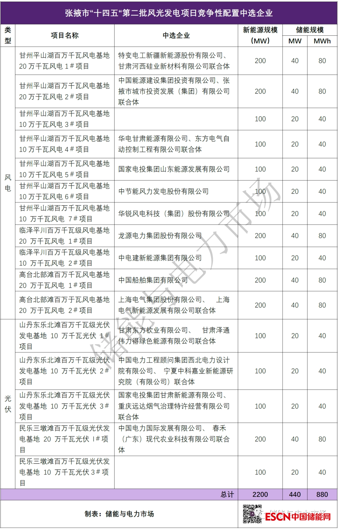 根據此前發(fā)布的《張掖市“十四五”第二批風光發(fā)電項目競爭性配置公告》的相關規(guī)定,此次新增風光項目需按照不低于風光裝機規(guī)模20%,儲能放電時長不低于2小時配置儲能系統。