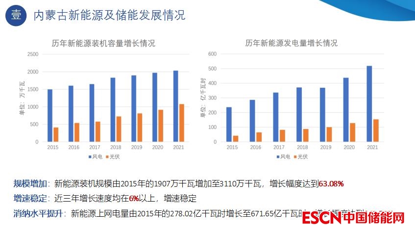從三個(gè)方面介紹,第一是內(nèi)蒙古新能源及儲(chǔ)能的發(fā)展情況;第二是蒙西電網(wǎng)與儲(chǔ)能的耦合;第三是對(duì)儲(chǔ)能發(fā)展的機(jī)遇和思考。希望引起大家的共鳴,同時(shí)也希望大家通過(guò)這個(gè)平臺(tái)到內(nèi)蒙古投資。