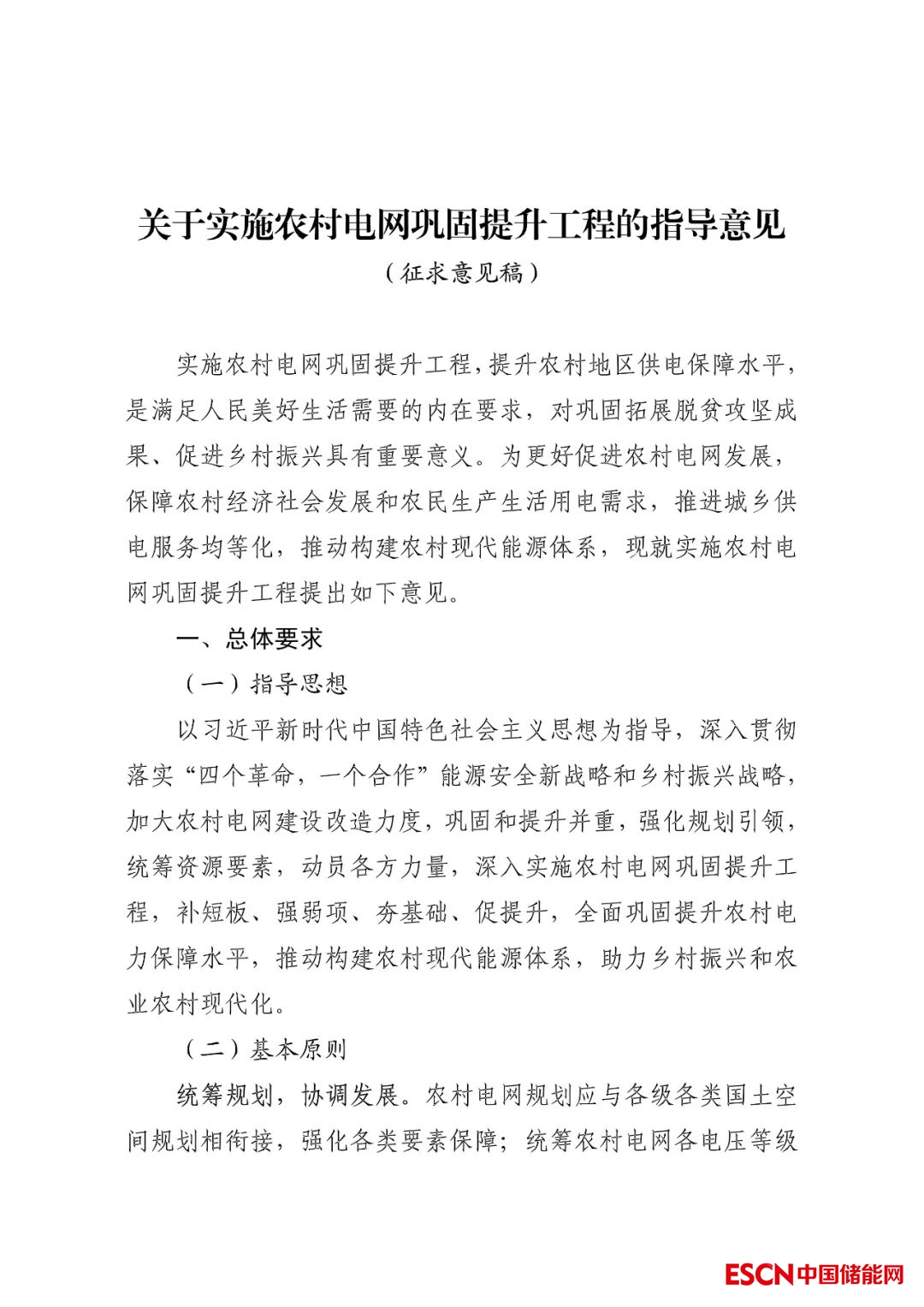 中國儲能網(wǎng)訊:2022年10月8日,國家發(fā)展改革委辦公廳 國家能源局綜合司發(fā)布十四五《關(guān)于實施農(nóng)村電網(wǎng)鞏固提升工程的指導意見(征求意見稿)》,意見稿指出: