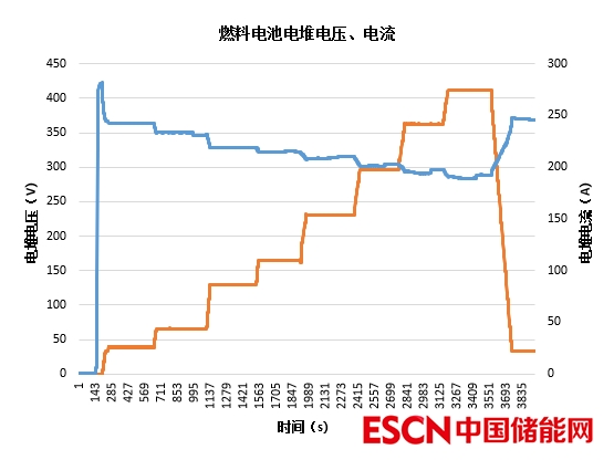 其中,穩(wěn)態(tài)性能主要為系統(tǒng)的額定功率,如果燃料電池系統(tǒng)在運行一段時間后功率達不到出廠時的額定功率,說明系統(tǒng)衰減較大,應(yīng)對系統(tǒng)進行維修或更換;啟動特性主要是低溫冷啟動特性,主要指標(biāo)參數(shù)有冷啟動溫度與啟動時間;動態(tài)性能主要為加減載響應(yīng)時間,加減載范圍為10%-90%額定功率。