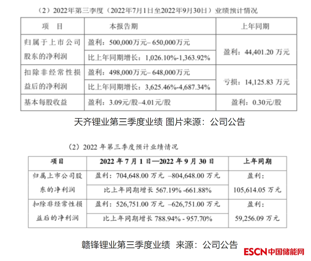中國(guó)儲(chǔ)能網(wǎng)訊:10月14日晚間,“鋰礦雙雄”天齊鋰業(yè)和贛鋒鋰業(yè)雙雙交出了亮眼的2022年前三季度業(yè)績(jī)預(yù)告。