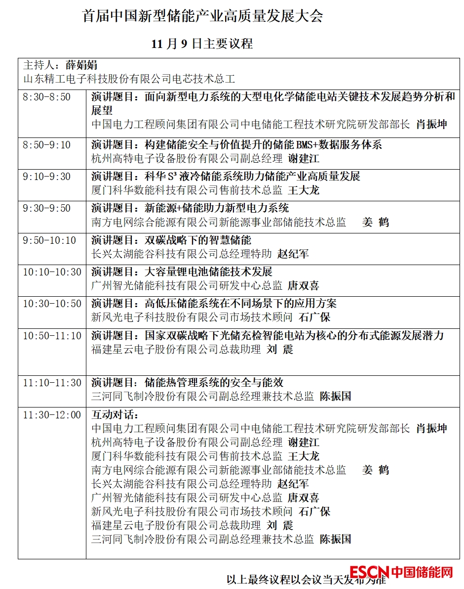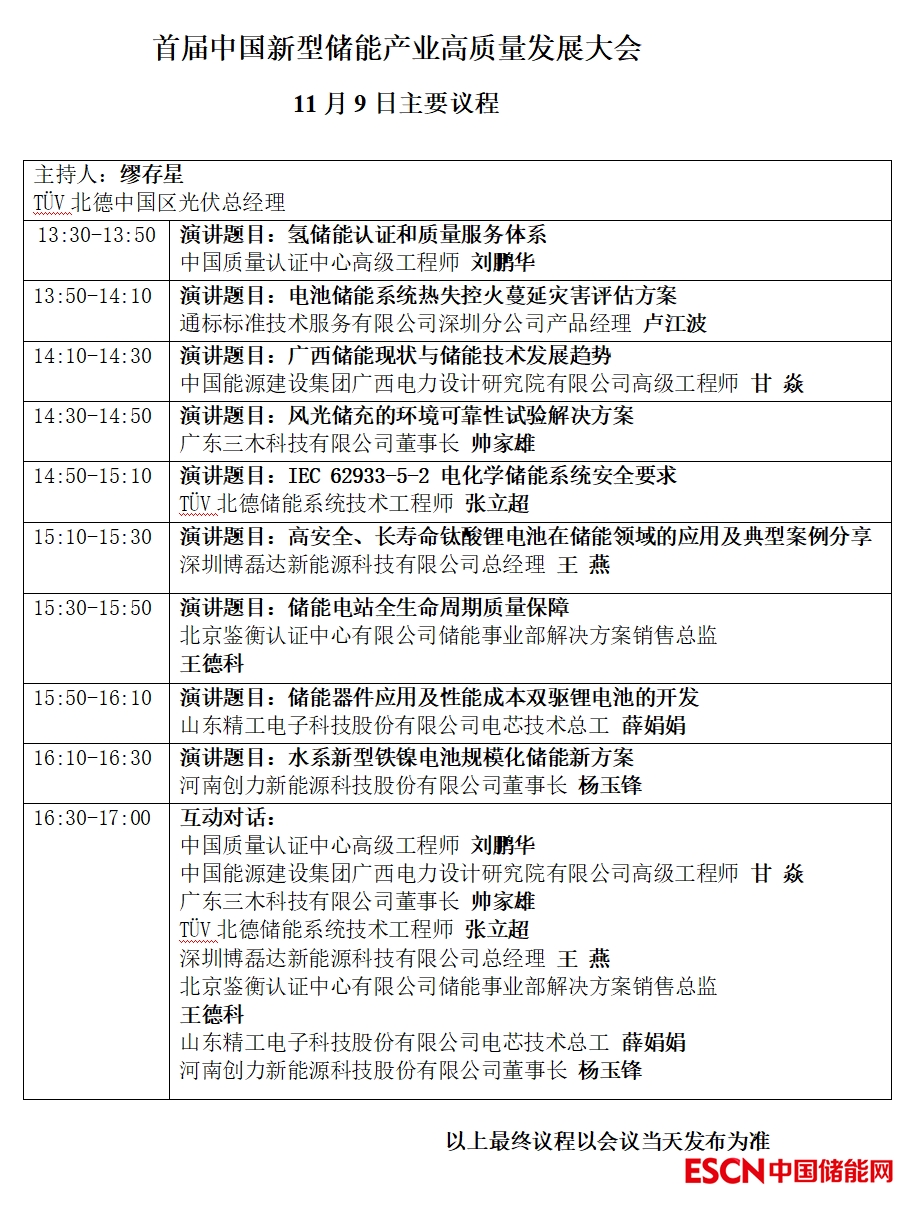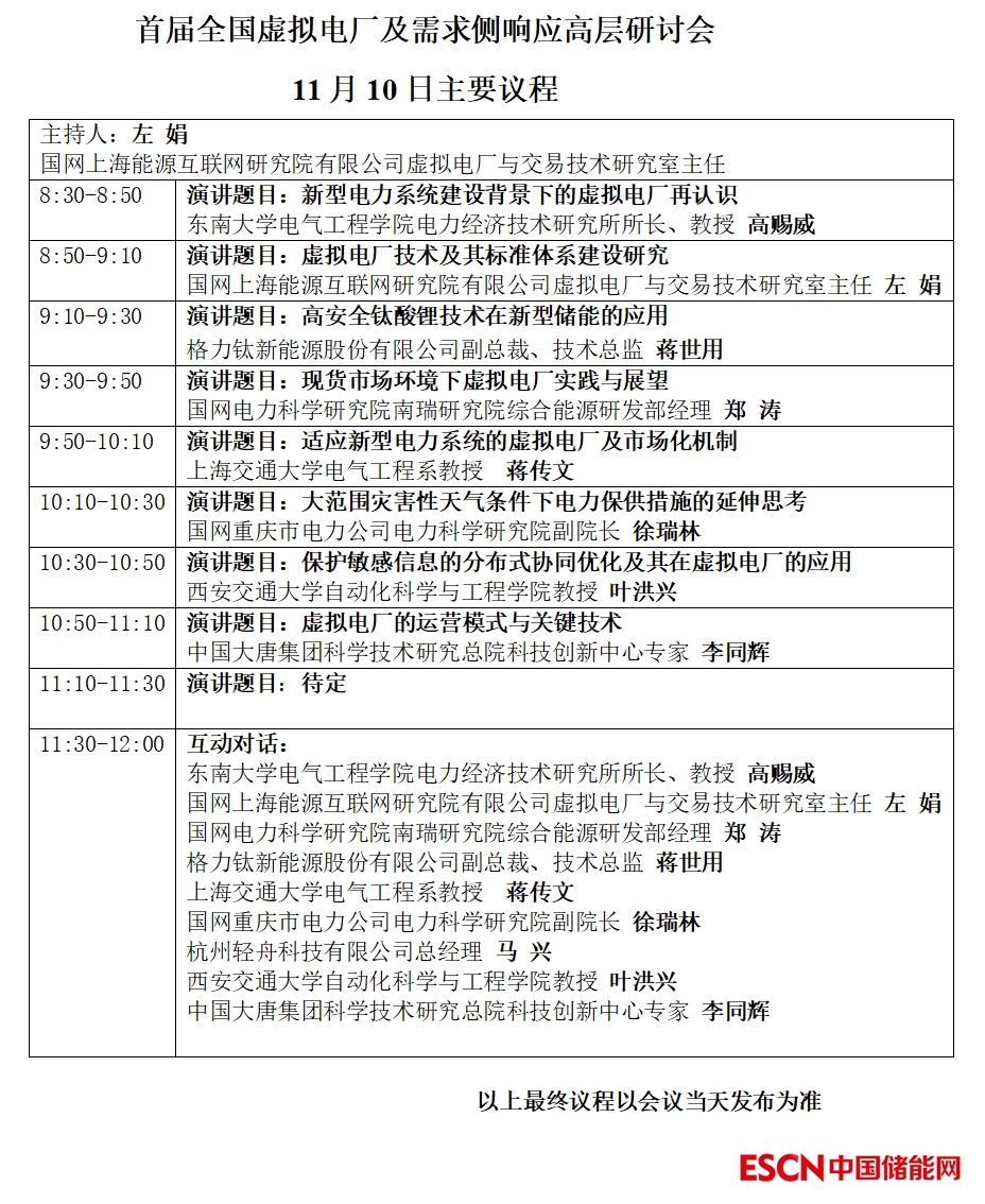 中國儲(chǔ)能網(wǎng)訊:為進(jìn)一步探討新型儲(chǔ)能系統(tǒng)集成與控制技術(shù)取得突破,建立和完善新型儲(chǔ)能裝備制造供應(yīng)鏈,推進(jìn)用戶側(cè)電力資源的智能聚合、互動(dòng)調(diào)控能力,提升項(xiàng)目規(guī)模效益和運(yùn)行經(jīng)濟(jì)性,中國化學(xué)與物理電源行業(yè)協(xié)會(huì)決定于2022年11月9-10日在山東濟(jì)南喜來登酒店召開“首屆中國新型儲(chǔ)能產(chǎn)業(yè)高質(zhì)量發(fā)展大會(huì)暨全國虛擬電廠及需求側(cè)響應(yīng)高層研討會(huì)”,以下為會(huì)議主要議程,供參考。
