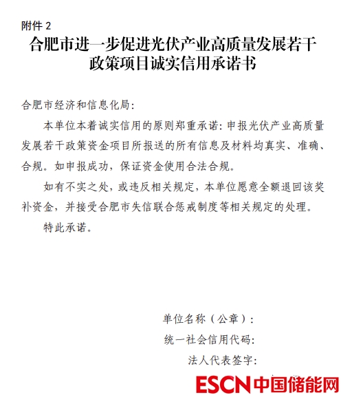2. 合肥市進(jìn)一步促進(jìn)光伏產(chǎn)業(yè)高質(zhì)量發(fā)展若干政策項(xiàng)目誠(chéng)實(shí)信用承諾書(shū)