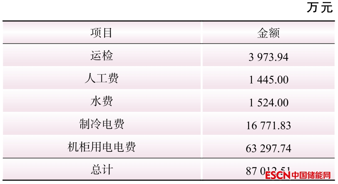 表4 北京某數(shù)據(jù)中心運(yùn)營(yíng)成本