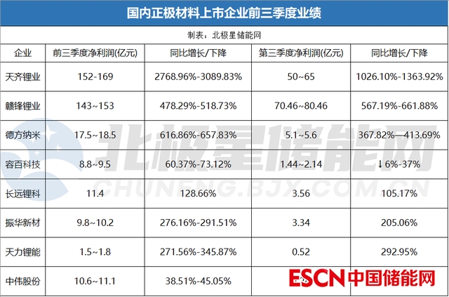 除天齊鋰業(yè)、贛鋒鋰業(yè)之外,德方納米、振華新材、天力鋰能、長遠鋰科等公司前三季度凈利潤與增長同比超過100%。