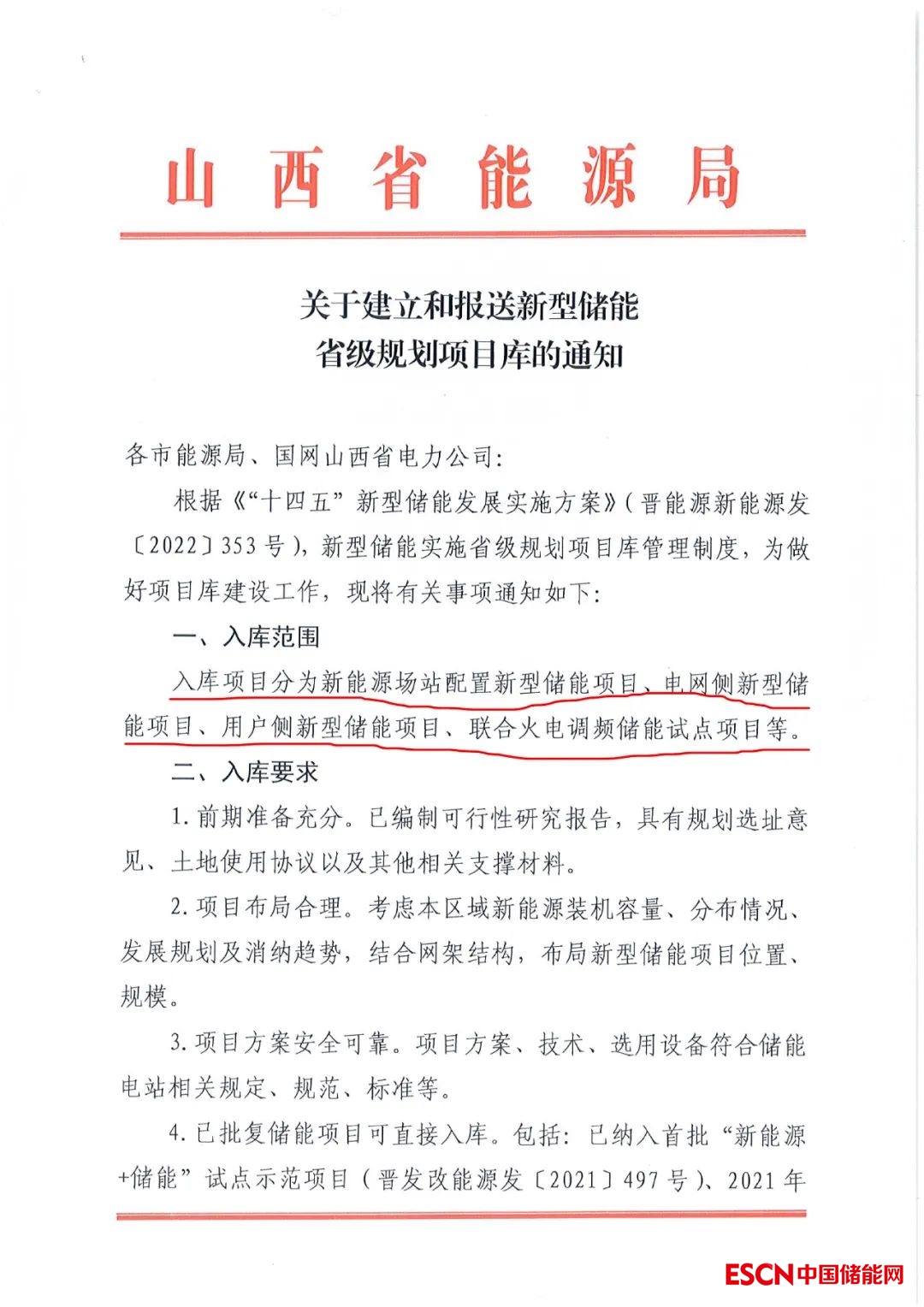 中國儲能網(wǎng)訊:近日,山西省能源局下發(fā)《關(guān)于建立和報送新型儲能省級規(guī)劃項目庫的通知》?!锻ㄖ繁硎?,入庫項目分為新能源場站配置新型儲能項目、電網(wǎng)側(cè)新型儲能項目、用戶側(cè)新型儲能項目、聯(lián)合火電調(diào)頻儲能試點項目等。