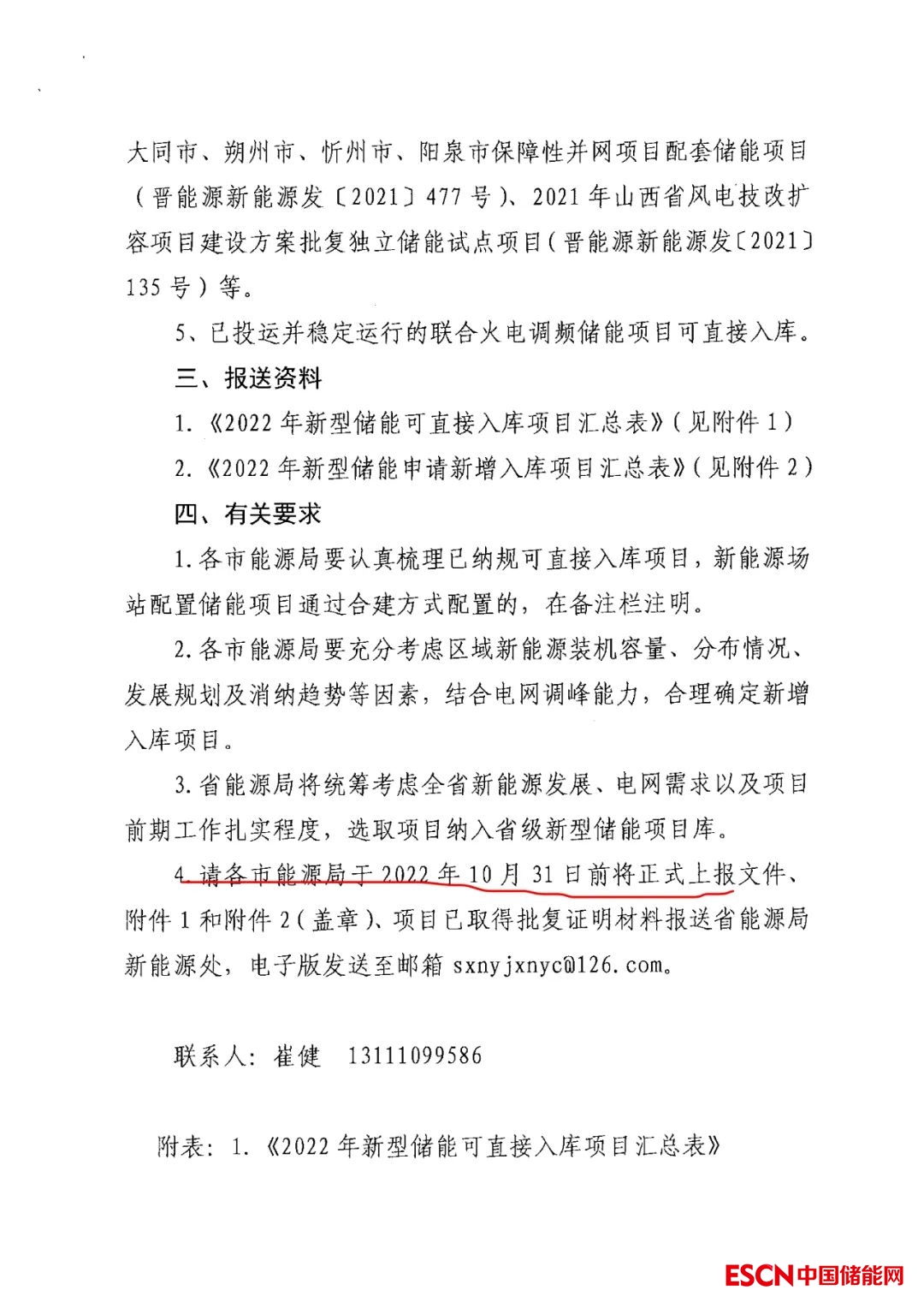 其中,入庫要求顯示,已批復(fù)儲能項目可直接入庫,包括:已納入首批“新能源+儲能“試點示范項目(晉發(fā)改能源發(fā)(2021)497號)、2021年大同市、朔州市、忻州市、陽泉市保障性并網(wǎng)項目配套儲能項目(晉能源新能源發(fā)(2021)477號)、2021年山西省風(fēng)電技改擴容項目建設(shè)方案批復(fù)獨立儲能試點項目(晉能源新能源發(fā)(2021)135號)等;已投運并穩(wěn)定運行的聯(lián)合火電調(diào)頻儲能項目可直接入庫。