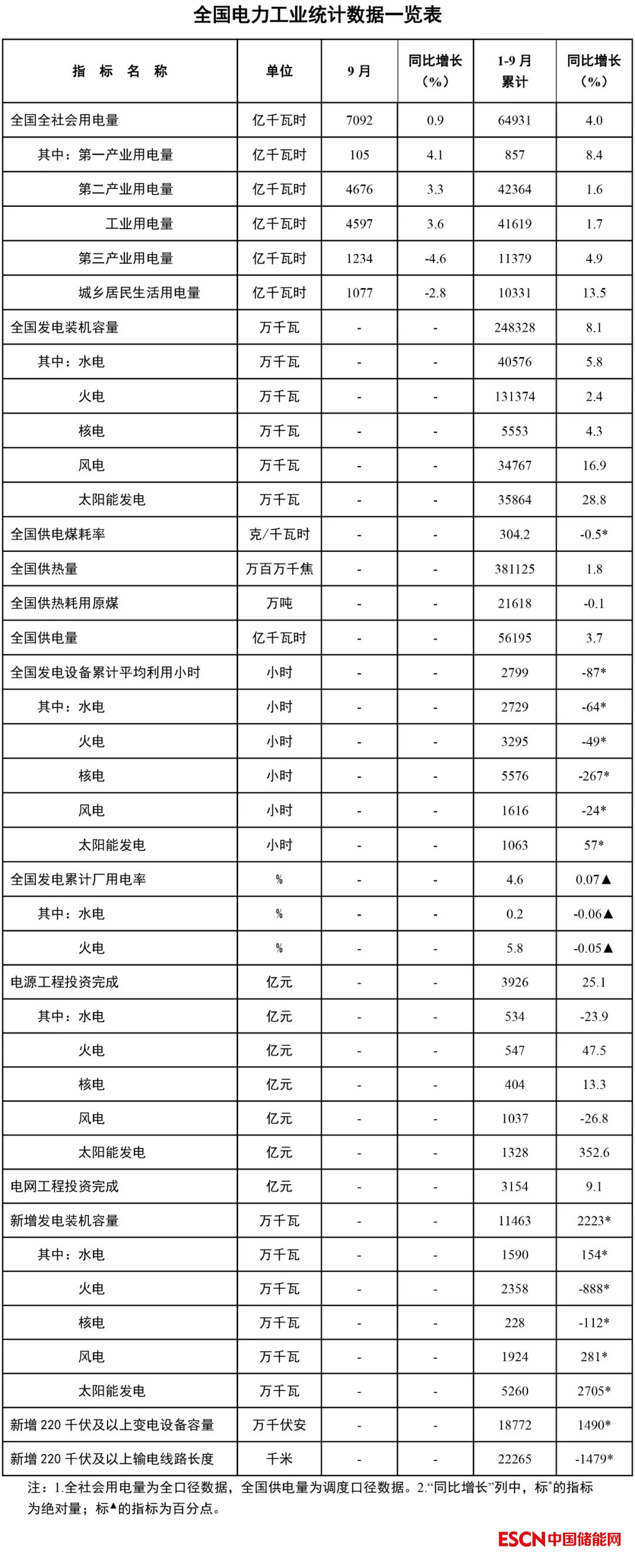 中國儲能網(wǎng)訊:10月24日,國家能源局發(fā)布1~9月份全國電力工業(yè)統(tǒng)計數(shù)據(jù)。