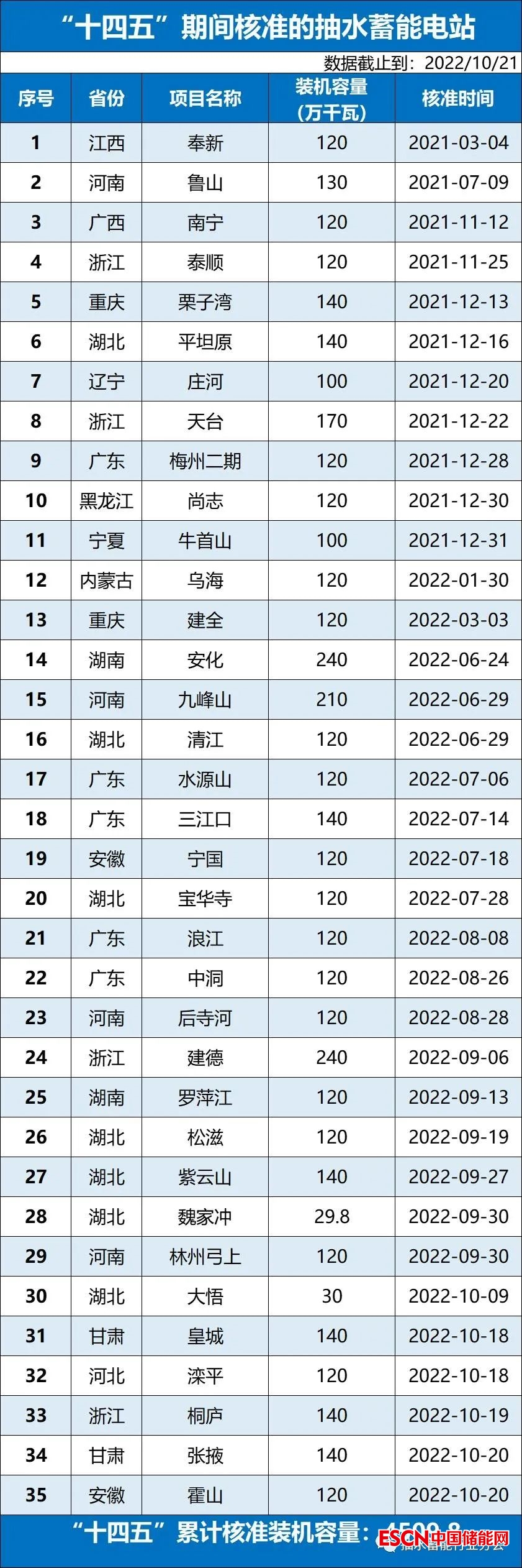 中國儲能網(wǎng)訊:截至 2022年 10月 21日,“十四五”期間已核準(zhǔn)抽水蓄能電站共計 35個項目,裝機規(guī)模合計為 4509.8萬千瓦,項目投資金額合計約為 3451億元。