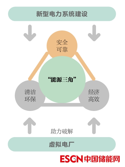 新型電力系統(tǒng)建設(shè)需要面對“能源三角”難題,即同時(shí)實(shí)現(xiàn)安全、環(huán)保和經(jīng)濟(jì),虛擬電廠有望為此提供重要助力。