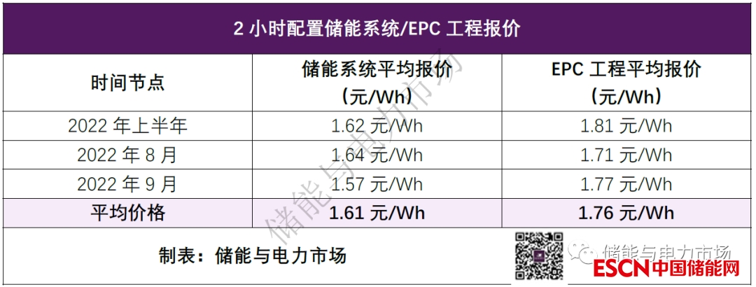 根據(jù)儲(chǔ)能與電力市場(chǎng)的價(jià)格數(shù)據(jù)庫,2022年以來,儲(chǔ)能項(xiàng)目投標(biāo)中,0.5C(2小時(shí))儲(chǔ)能系統(tǒng)的報(bào)價(jià)最低價(jià)為1.294元/Wh,最高報(bào)價(jià)為2.258元/Wh,大部分情況位于1.4-1.6元/Wh之間,占比約為70%。