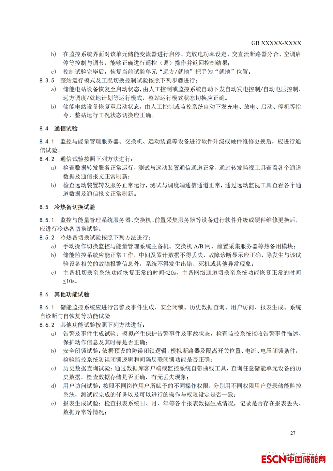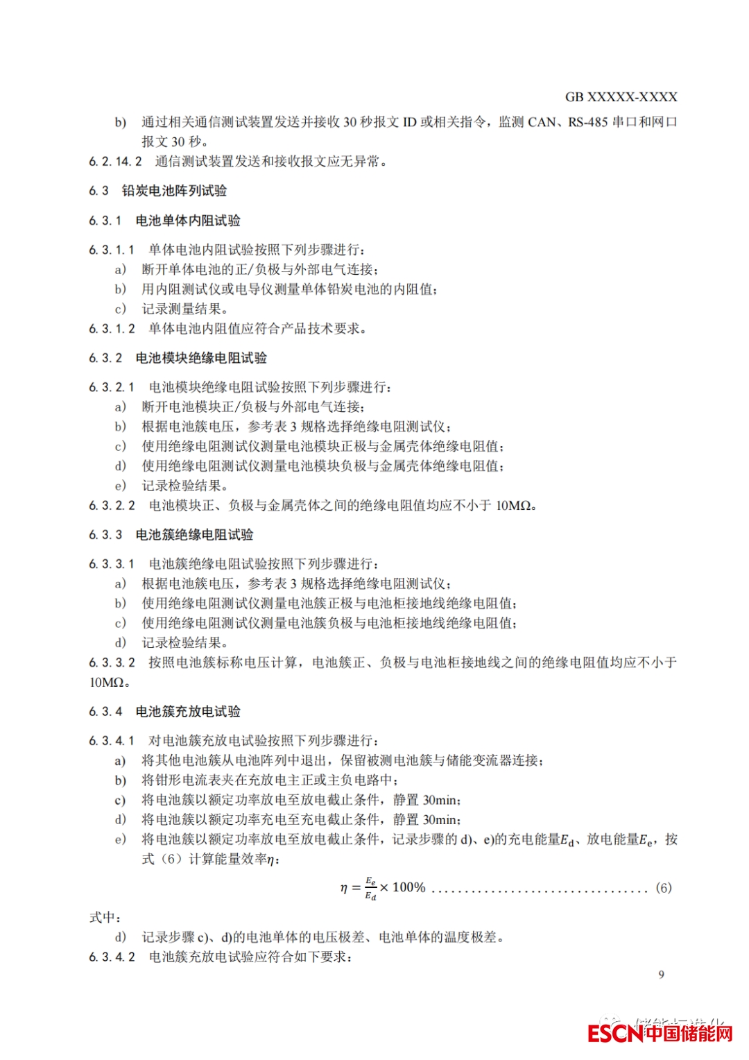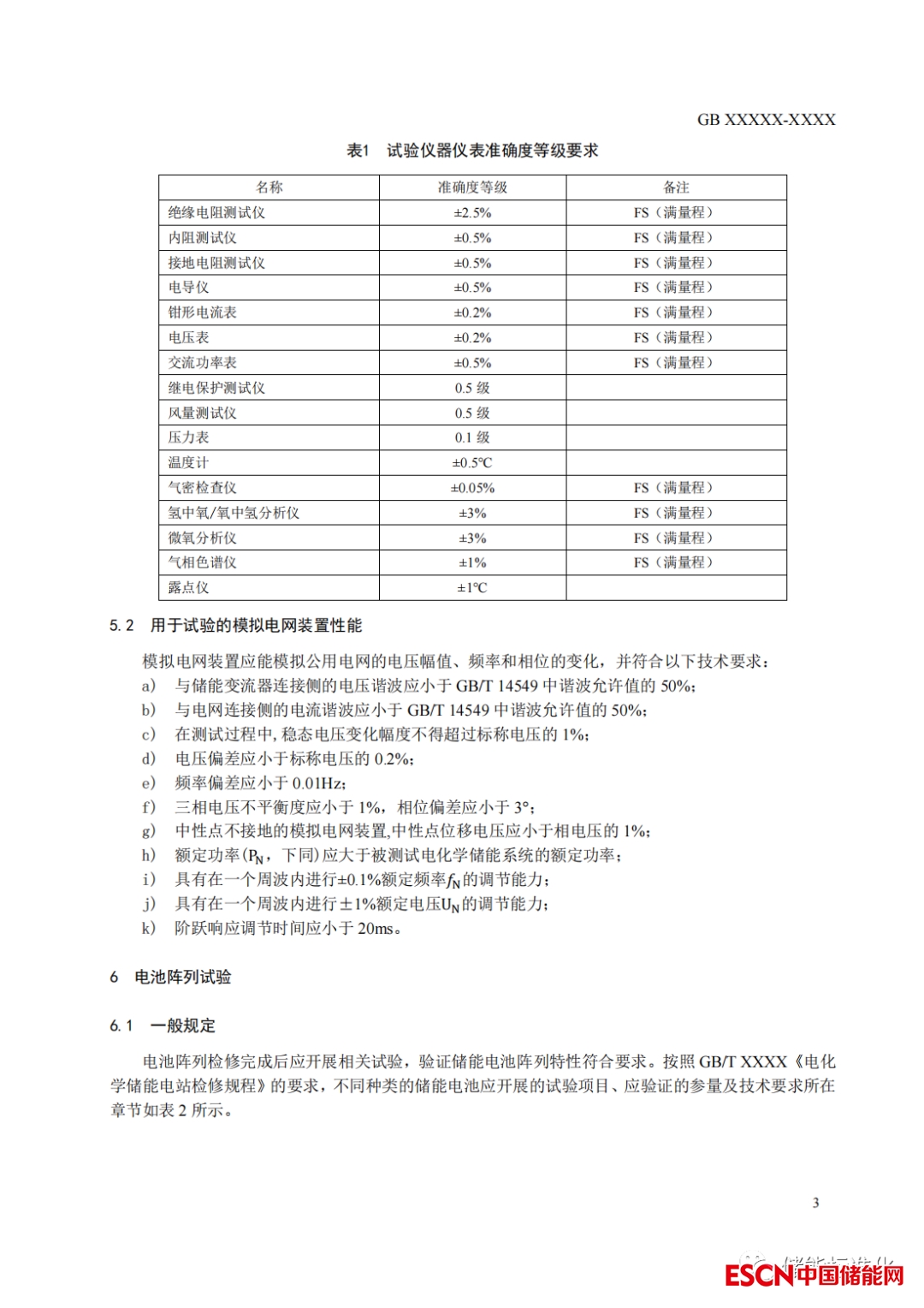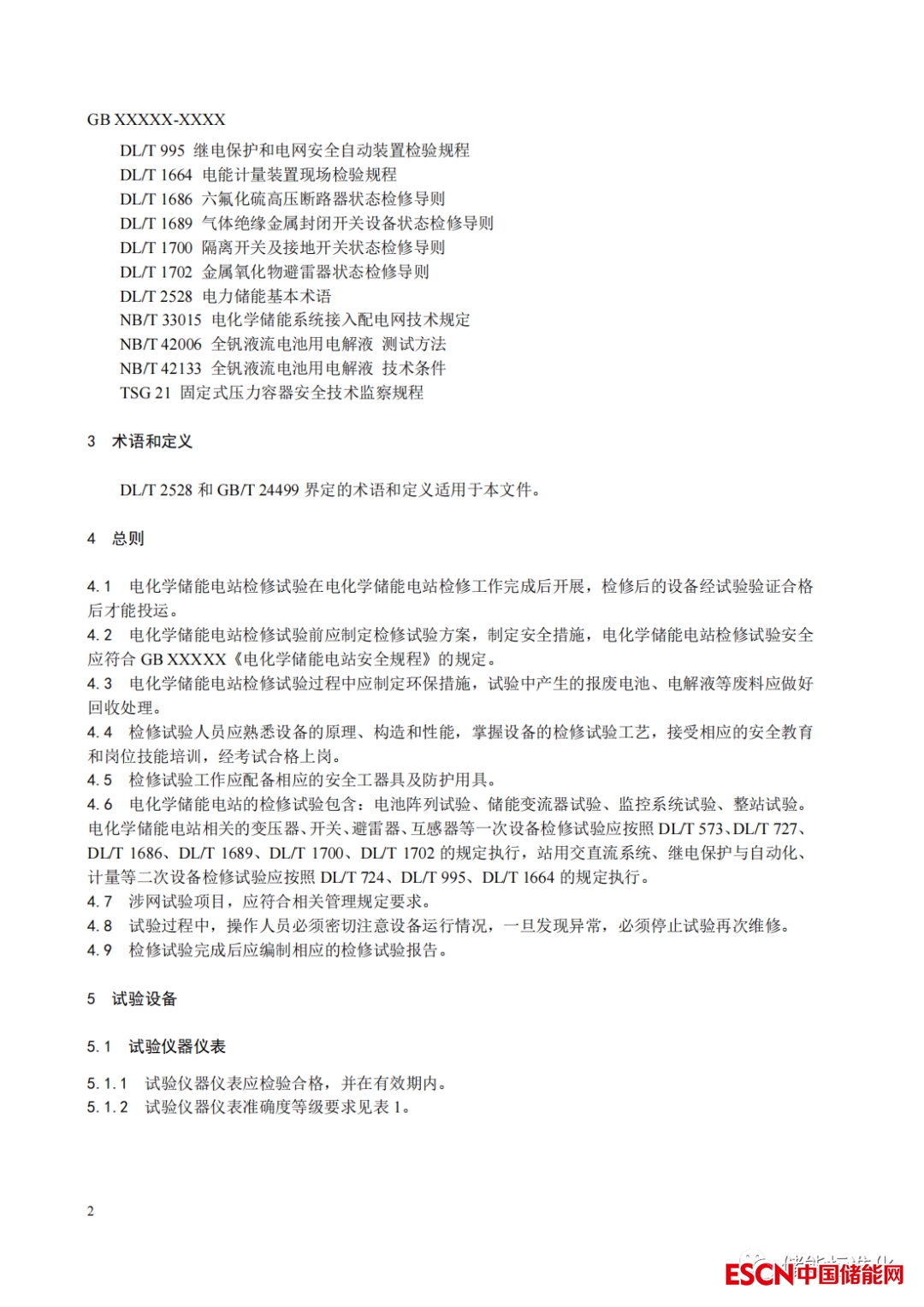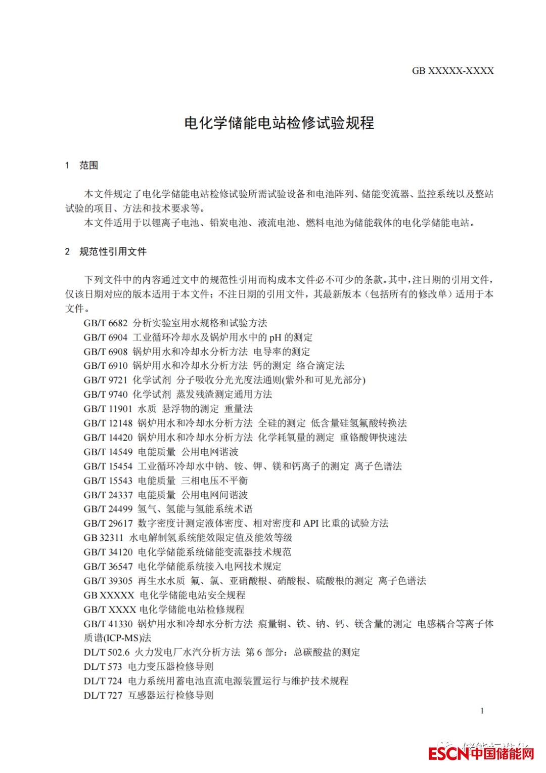 《電化學(xué)儲(chǔ)能電站檢修試驗(yàn)規(guī)程》規(guī)定了電化學(xué)儲(chǔ)能電站檢修試驗(yàn)所需試驗(yàn)設(shè)備和電池陣列、儲(chǔ)能變流器、監(jiān)控系統(tǒng)以及整站試驗(yàn)的項(xiàng)目、方法和技術(shù)要求等,全面反映了電化學(xué)儲(chǔ)能電站檢修試驗(yàn)的規(guī)范化要求。本文件適用于以鋰離子電池、鉛炭電池、液流電池、燃料電池為儲(chǔ)能載體的電化學(xué)儲(chǔ)能電站。