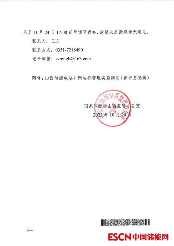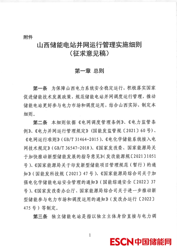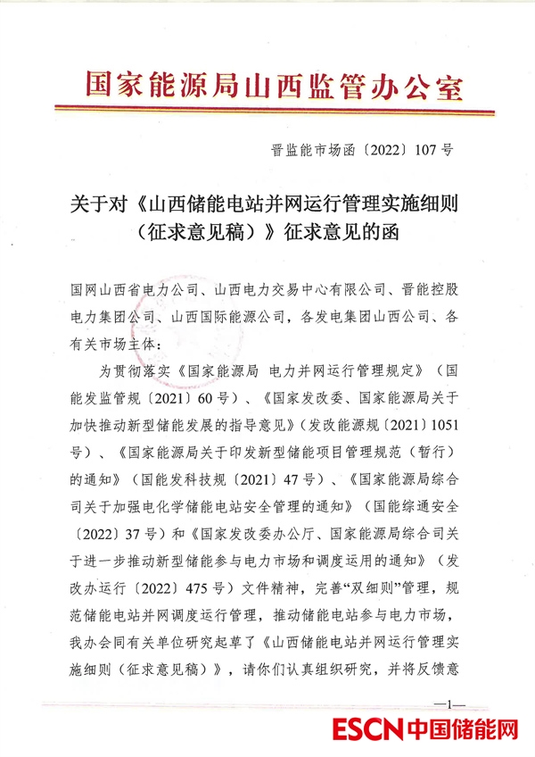 中國儲能網訊:10月27日,山西省能監(jiān)辦發(fā)布《山西儲能電站并網運行管理實施細則(征求意見稿)》。