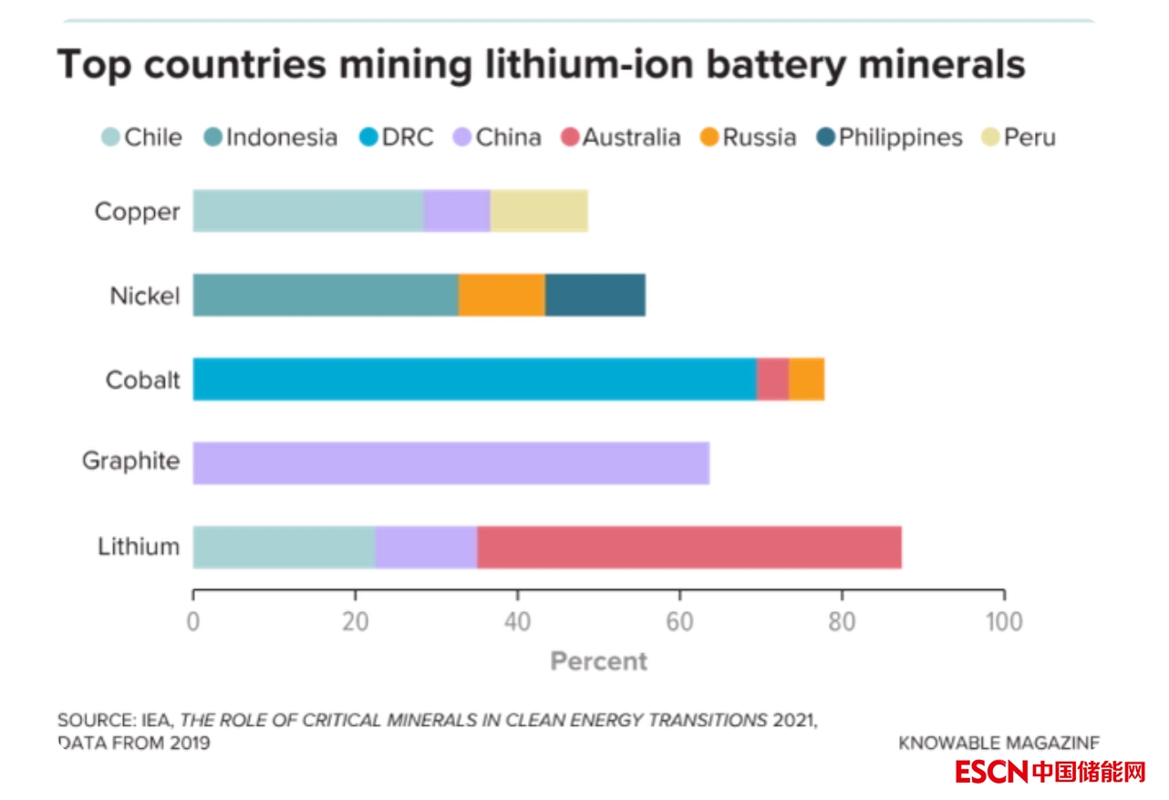 所有這些金屬都必須提取出來,而且僅靠回收還不能滿足市場需求。盡管美國有很多銅礦(并從廢品回收中獲得相當(dāng)大一部分銅),但鋰離子電池中幾乎所有的其他金屬都來自其他國家的礦區(qū)。全球80%以上的鋰來自智利、澳大利亞和中國,而60%以上的鈷來自剛果民主共和國。