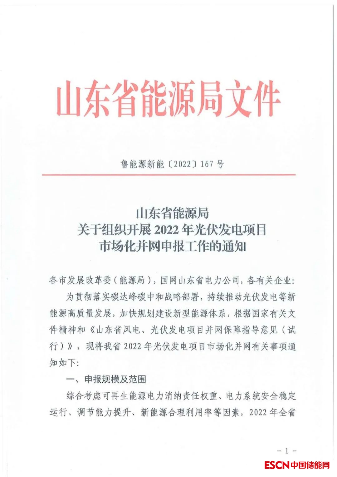 中國儲能網(wǎng)訊:10月28日,山東省能源局下發(fā)《關(guān)于組織開展2022年光伏發(fā)電項目市場化并網(wǎng)申報工作的通知》,根據(jù)通知: