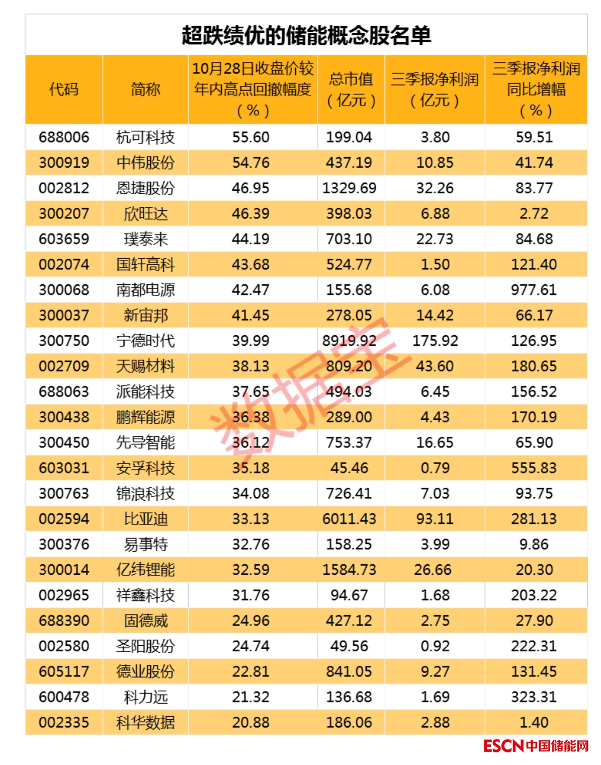 中國(guó)儲(chǔ)能網(wǎng)訊:證券時(shí)報(bào)數(shù)據(jù)寶消息,鋰電儲(chǔ)能供不應(yīng)求,超跌績(jī)優(yōu)股名單出爐。