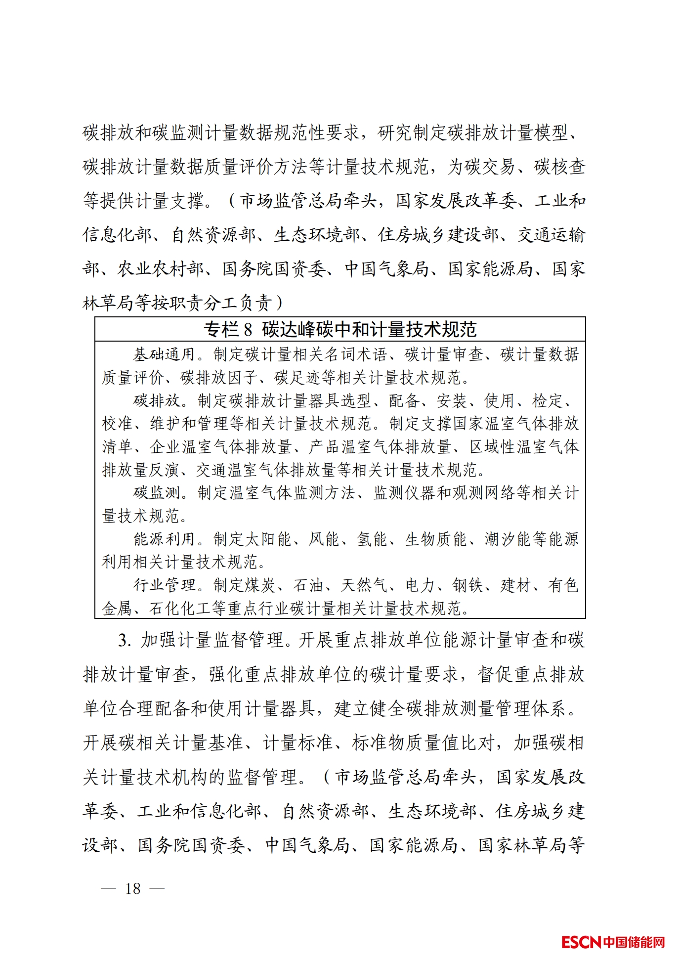中國儲能網(wǎng)訊:為貫徹落實《中共中央 國務(wù)院關(guān)于完整準確全面貫徹新發(fā)展理念做好碳達峰碳中和工作的意見》和《2030年前碳達峰行動方案》有關(guān)部署,近日,市場監(jiān)管總局、國家發(fā)展改革委、工業(yè)和信息化部、自然資源部、生態(tài)環(huán)境部、住房城鄉(xiāng)建設(shè)部、交通運輸部、中國氣象局、國家林草局等九部門聯(lián)合發(fā)布《建立健全碳達峰碳中和標準計量體系實施方案》(以下簡稱《實施方案》)。