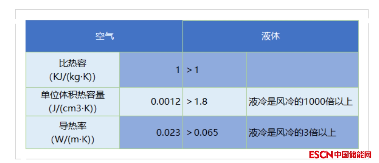 相較于風(fēng)冷以空氣為冷卻媒介,通過(guò)風(fēng)扇和壓縮制冷,液體的比熱容遠(yuǎn)高于空氣,單位體積熱容量是風(fēng)冷的1000倍以上,熱量傳導(dǎo)效率更高。