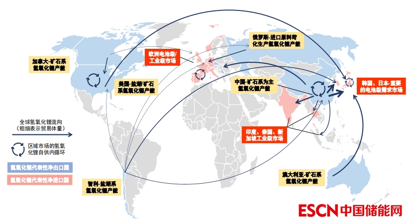 圖6 全球鋰資源、鋰化合物的貿(mào)易流動示意圖