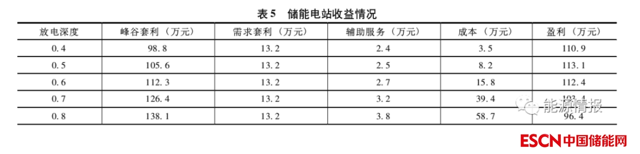 由上表可見,依據(jù)鋰離子電池循環(huán)壽命隨放電深度增加呈指數(shù)下降的趨勢,當(dāng)儲(chǔ)能系統(tǒng)放電深度較大時(shí),如表中放電深度為70%、80%的情況,循環(huán)壽命降低過快,將出現(xiàn)電池更換成本,從而增大年均成本,經(jīng)濟(jì)性較差。合理控制放電深度將有效控制儲(chǔ)能系統(tǒng)成本,創(chuàng)造出盈利機(jī)會(huì),從表中數(shù)據(jù)看,放電深度越小,如50%、60%時(shí),越能夠獲得盈利。