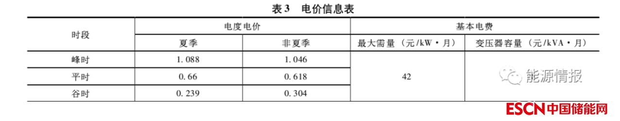 由上圖可知,園區(qū)A整體負(fù)荷較大,但相對(duì)平穩(wěn);園區(qū)B負(fù)荷較小,但呈現(xiàn)明顯的“峰高谷低”特征。另外,該園區(qū)為35kV電壓接入,采用兩部制電價(jià)(需量計(jì)費(fèi)),具體如表3所示。
