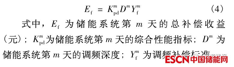 2)調(diào)頻服務(wù)。儲(chǔ)能電站的調(diào)頻服務(wù)收入主要來自電網(wǎng)對(duì)其參與調(diào)頻量進(jìn)行的補(bǔ)償費(fèi)用,目前國內(nèi)的調(diào)頻示范案例均為依據(jù)調(diào)節(jié)里程補(bǔ)償。其補(bǔ)償計(jì)算方法如下所示: