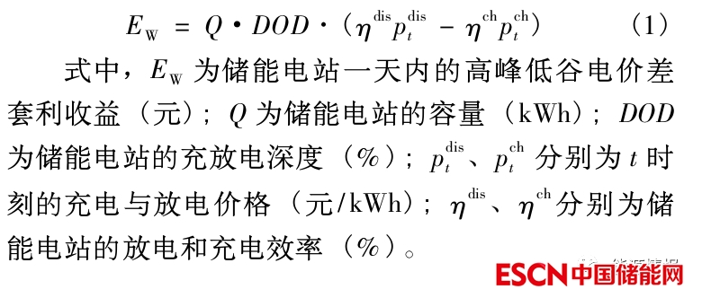 研究表明,峰谷價(jià)差達(dá)到0.7元/kWh時(shí),儲(chǔ)能的收益率達(dá)到9.82%。儲(chǔ)能系統(tǒng)參與一個(gè)完整充放電循環(huán)的峰谷套利收益如下: