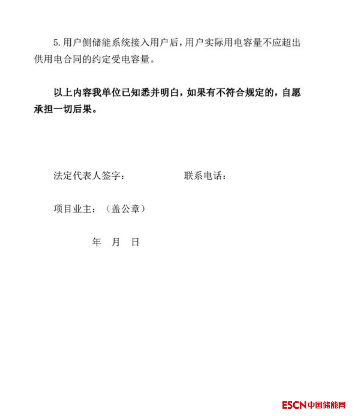 企業(yè)用戶側(cè)儲能參照電源、電網(wǎng)、用戶電力設(shè)施管理規(guī)定,納入全市電力運行統(tǒng)一管理,接受電網(wǎng)統(tǒng)籌調(diào)度,以確保清潔能源消納和公用電網(wǎng)安全運行,并開展削峰填谷、備電、需求側(cè)響應(yīng)、無功響應(yīng)等應(yīng)用。項目業(yè)主(項目法人)對儲能項目安全負主體責(zé)任,將儲能項目安全納入企業(yè)安全管理體系,對儲能項目安全運行、管理、維護作出安全承諾,承擔因自身原因造成向電網(wǎng)倒送電及其他事故引起的一切法律責(zé)任。(見附件6)