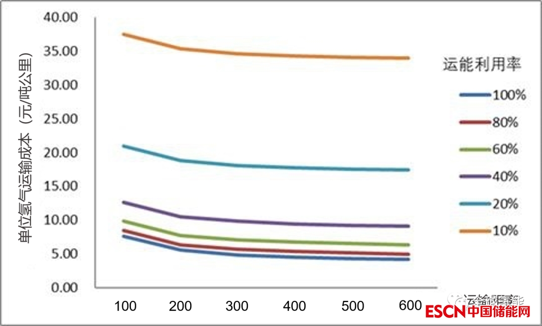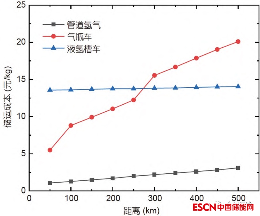 圖 管道氫氣運(yùn)輸單位成本(元/噸公里)