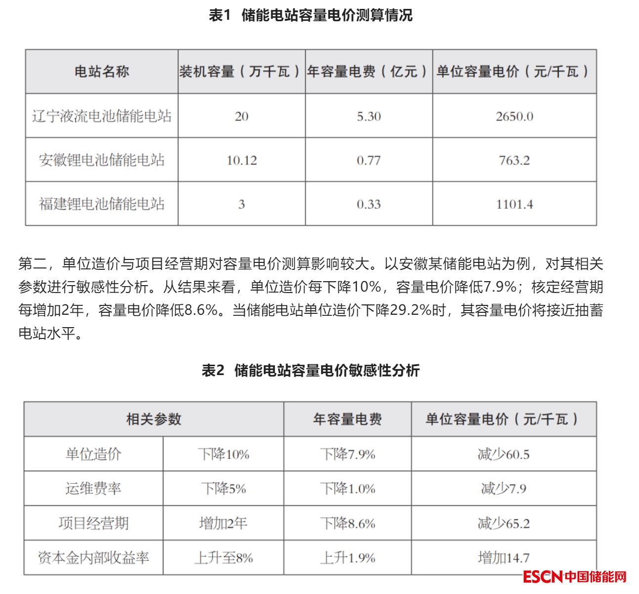 兩部制電價:容量電價反映儲能保障電力系統(tǒng)容量充裕度的“系統(tǒng)效用”,回收除充放電損耗外的其他成本,并獲得合理收益;電量電價體現(xiàn)儲能電站的“電量效用”,主要補償儲能電站的充放電損耗,實現(xiàn)對儲能運行轉換效率的獎懲,更有利于提高儲能調用積極性。