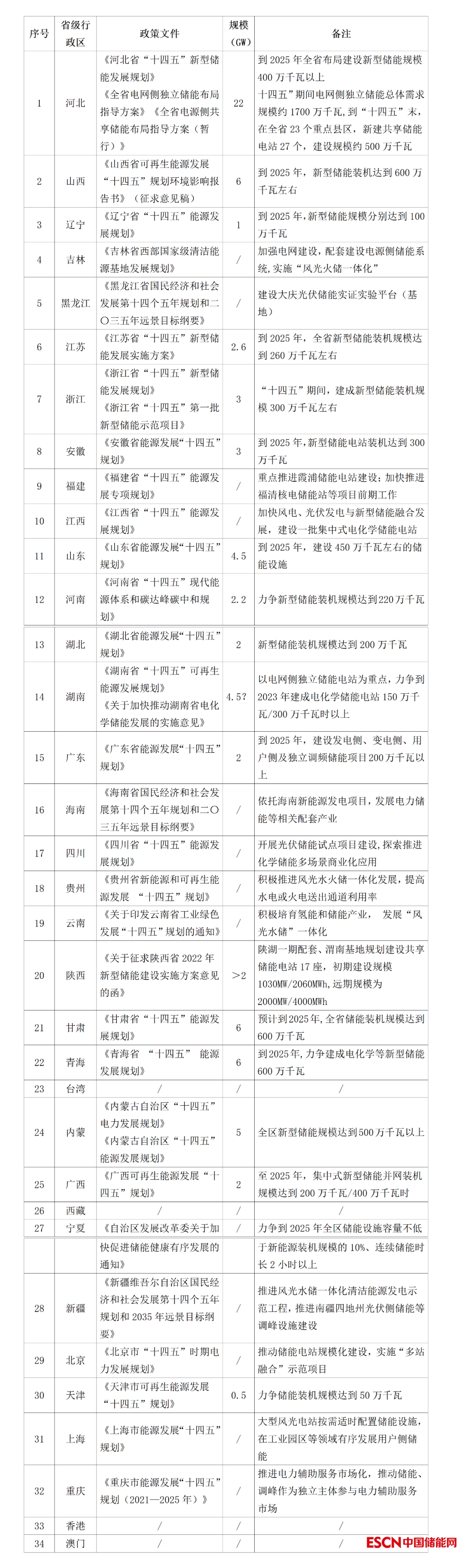 “十四五”新型儲能裝機(jī)規(guī)劃目標(biāo)