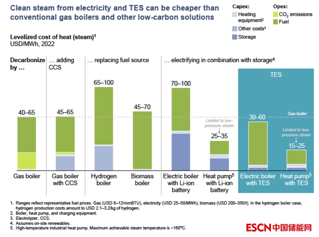 4、儲(chǔ)能目前已經(jīng)成為一種具有成本競(jìng)爭(zhēng)力的蒸汽脫碳解決方案